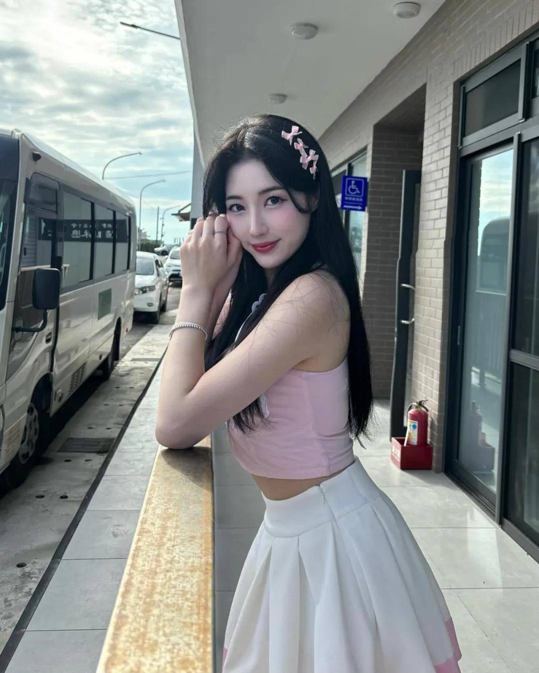 熟悉她的粉丝都知道,朴旻曙从来不是靠颜值“躺赢”的花瓶。在之前的应援活动里,她每次出场都像自带聚光灯——172cm的身高配上黄金腰臀比,白色短袖印着俏皮字母,黑色短裤勾勒出流畅的腿部线条,拿着白色扇子跳舞时连发丝都在发光。有网友扒出她私下训练视频,劈叉、空翻等高难度动作信手拈来,难怪专业舞者都点赞:“这控制力放在偶像团体里也是主舞级别的。”